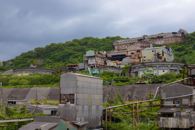 | 選炭工場跡 採掘した石炭はベルトコンベアで斜面上まで上げられ、 そこから重力を利用し港まで降りる過程で選定する